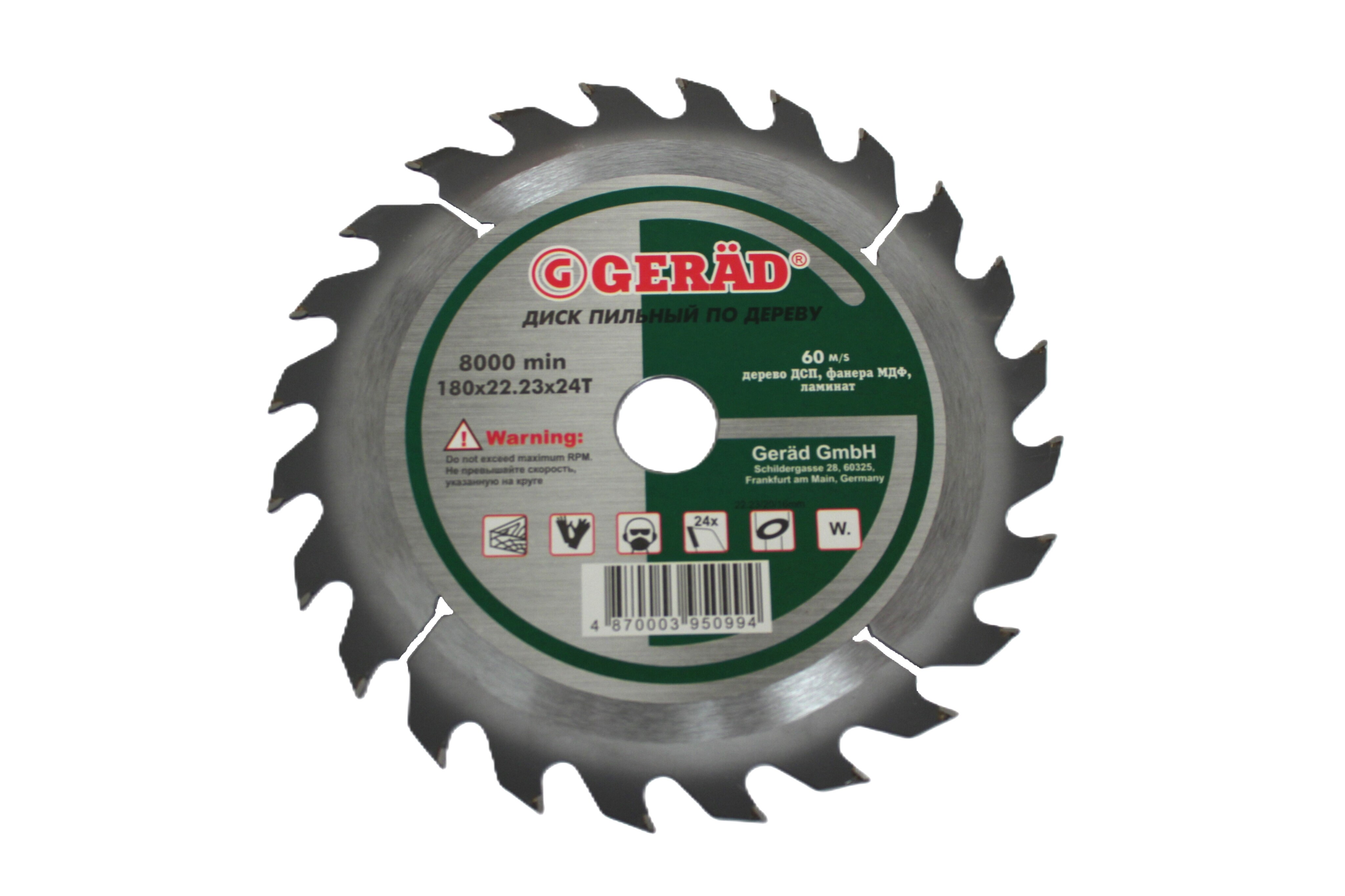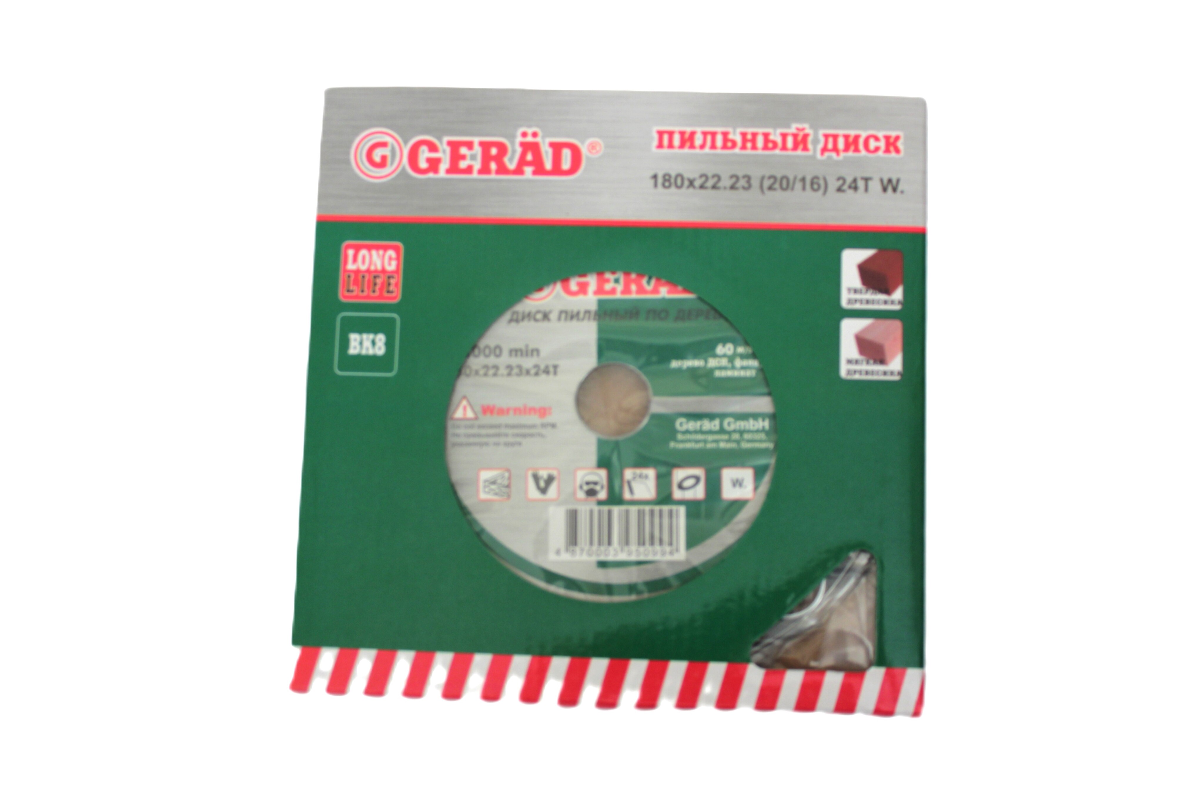 Диск пильный по дереву GERÄD 180-22,23 (20/16) T24 PM1000006 - это диск изготовленные из высокосортной стали термически закаленной, обеспечивают высокую прочность инструмента; специальная напайка из твердого сплава гарантирует долгую износоустойчивость и многократную заточку. Используются совместно с циркулярными пилами и циркулярными станками для продольных и поперечных пропилов твердой и мягкой древесины, фанеры, МДФ, ДСП, OSB. Обеспечивают ровные и чистые края обрабатываемой поверхности.