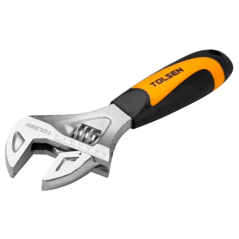 Ключ разводной TOLSEN укороченный Industrial — это идеальный инструмент для выполнения множества задач в сфере ремонта и обслуживания. Длина ключа составляет 165 мм, что обеспечивает удобство в использовании, особенно в ограниченных пространствах. Максимальное расстояние между губками достигает 30 мм, что позволяет уверенно работать с различными крепежами и гайками.