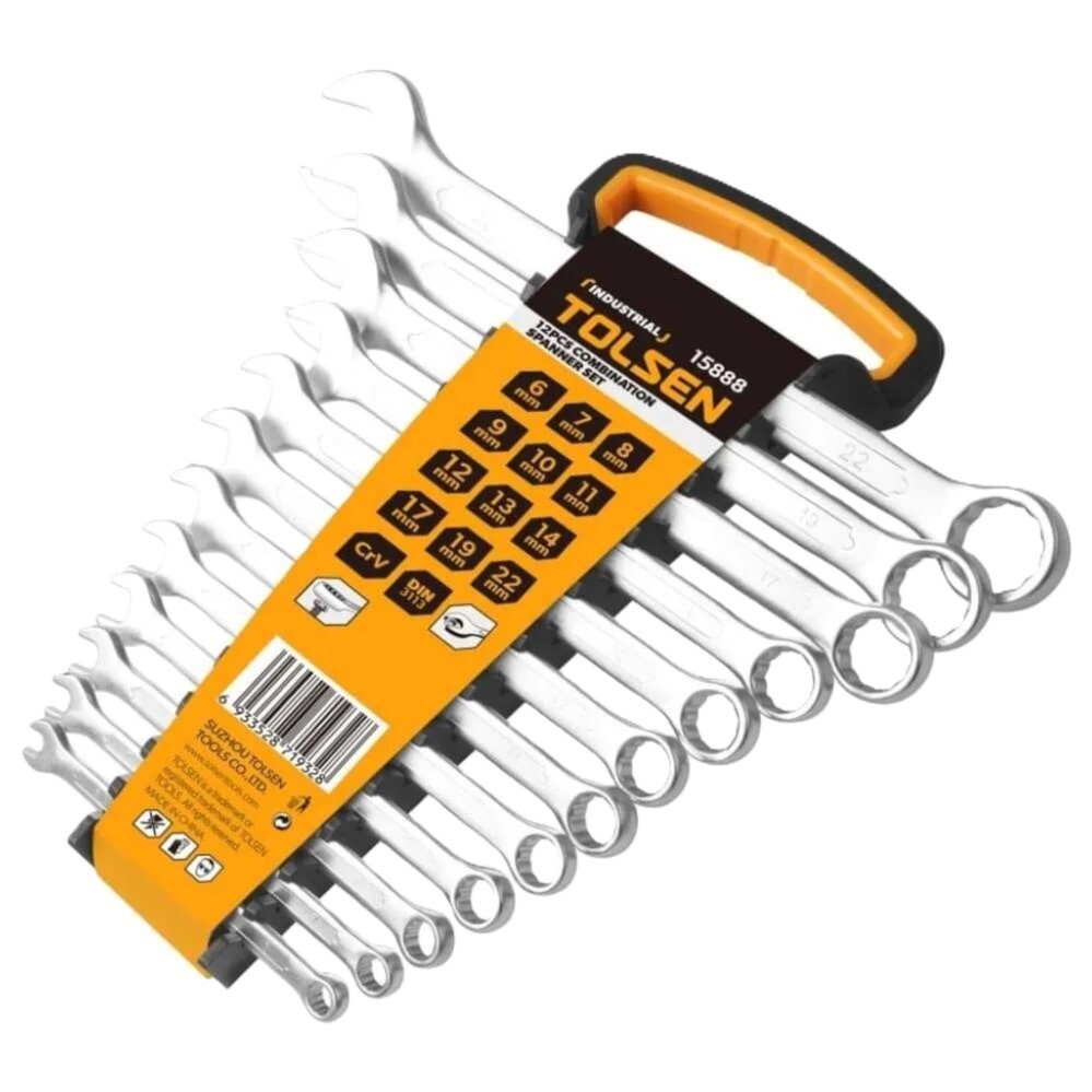 Набор ключей гаечных комбинированных TOLSEN 12шт. 15888 - предназначен для широкого спектра ремонтных работ. Находит применение на станциях технического обслуживания, в автосервисах, строительстве и производстве. Комбинированный ключ является самым распространенным вариантом гаечного ключа т.к. совмещает в себе возможности рожкового и накидного профилей. Инструменты выполнены из качественной хромованадиевой стали. Хромированное покрытие исключает возникновение коррозии.