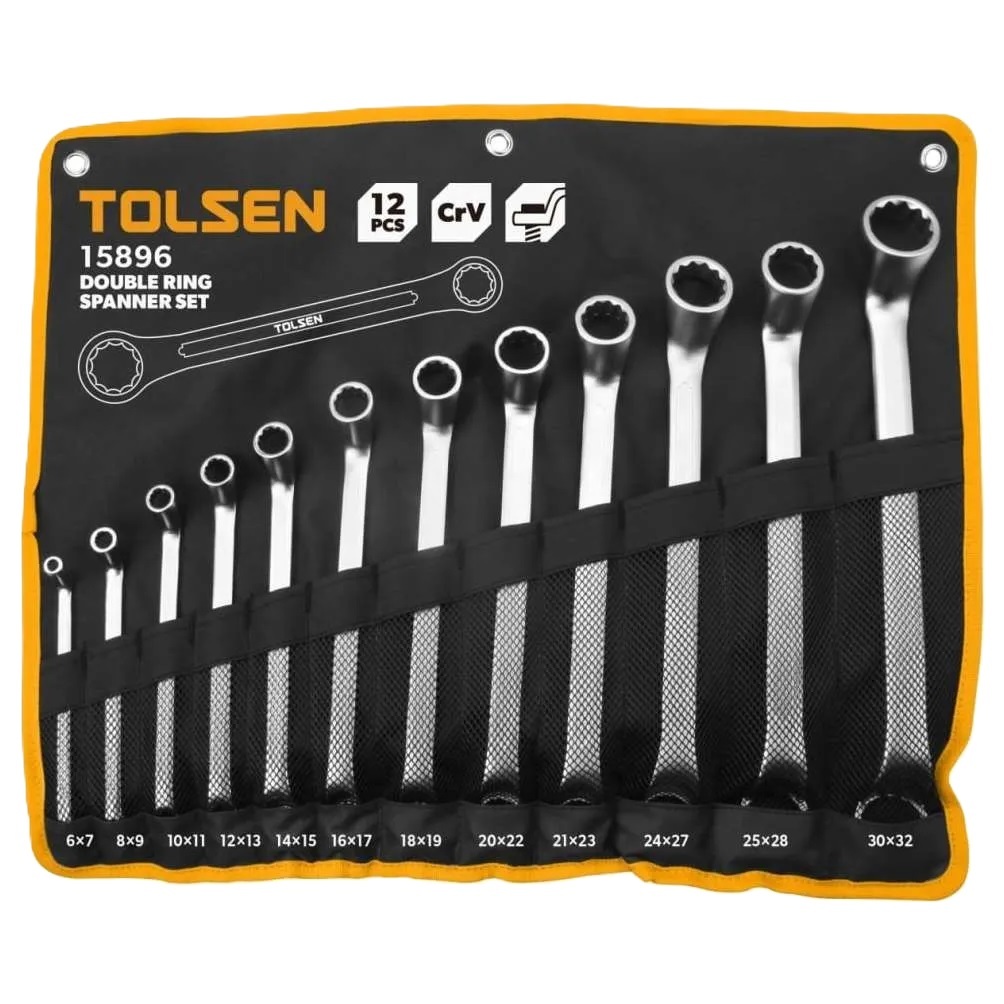 Набор ключей гаечных накидных TOLSEN 6-32мм 12шт. 15896 - предназначен для широкого спектра ремонтных работ. Накидной профиль, в отличии от рожкового, позволяет увеличить прилагаемое к крепежу усилие, с минимальным риском повреждения граней. Рабочий профиль накидной 12-гранный с вылетом 75° делает работы в ограниченном пространстве более удобными. Инструменты выполнены из качественной хромованадиевой стали. Хромированное покрытие исключает возникновение коррозии.